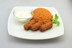 A: Waffel B: Clementine (DGE) C: Tomatensuppe (Vorsuppe)