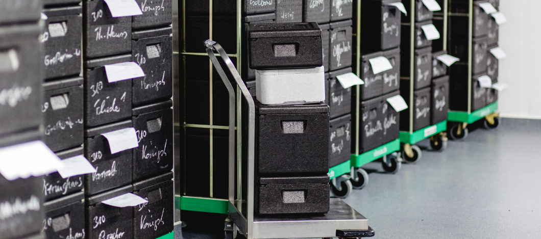1.900 Quadratmeter Produktionsfläche, Platz für 160 Paletten Kühlwaren, IT-gestützte Kühlanlagen und Kochprozesse, 60 Auslieferungsfahrzeuge.